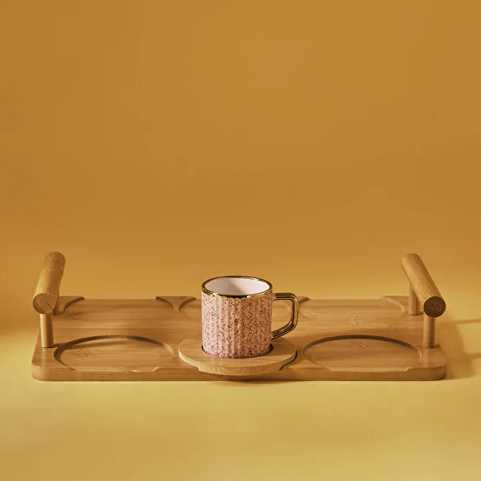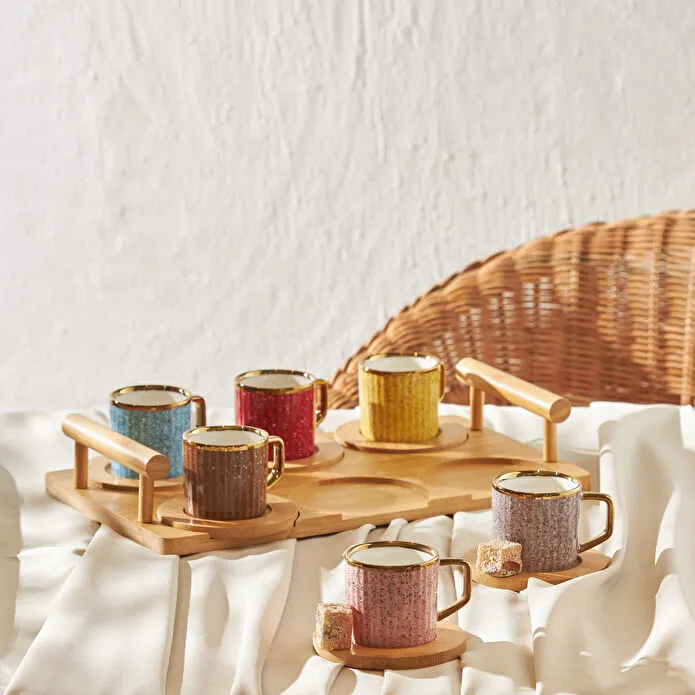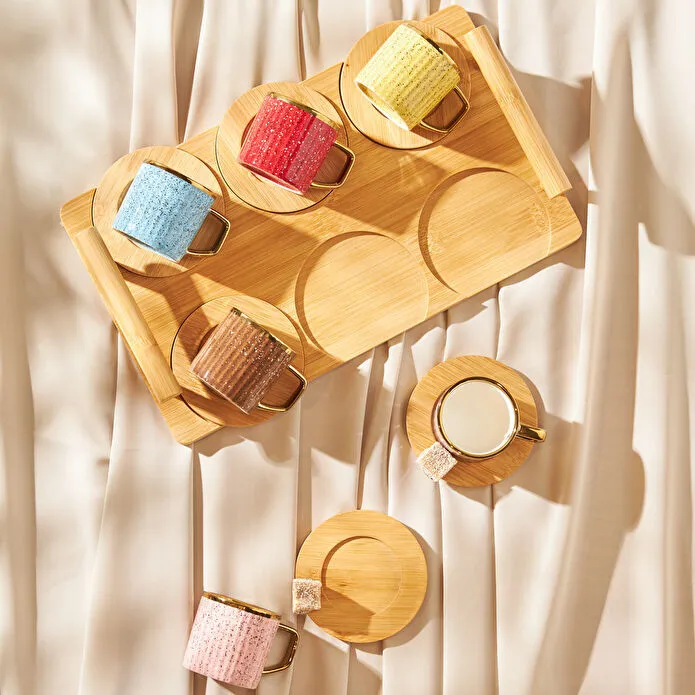 نام محصول : Karaca Bambu Tepsili 6 Kişilik Renkli Kahve Fincan Takımı 90 ml