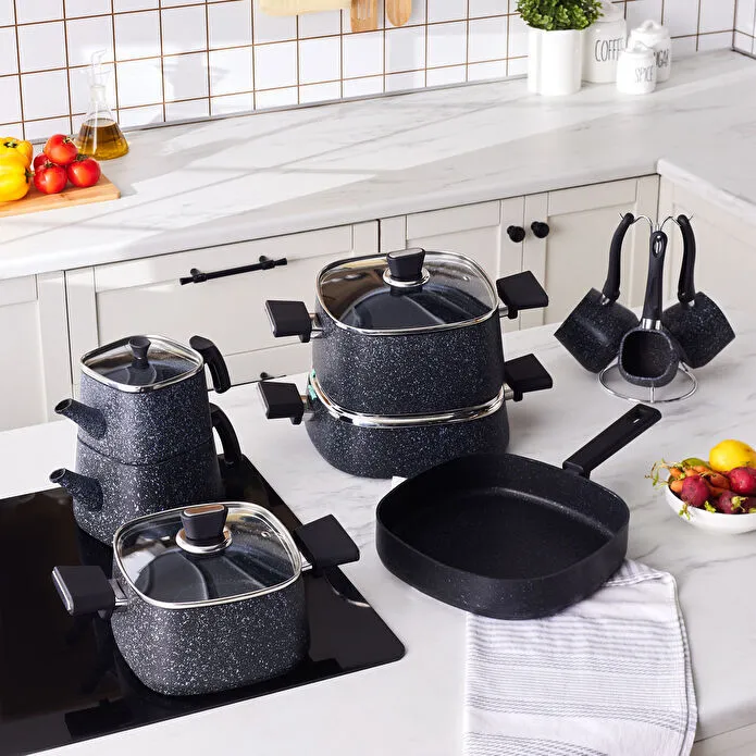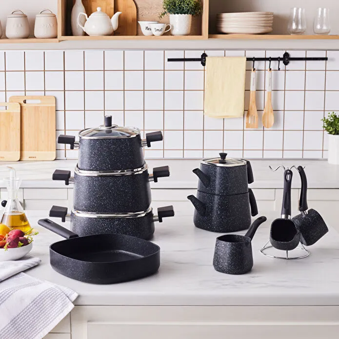 سرویس جهیزیه استیل ۱۴ پارچه Biogranit Sando مشکی