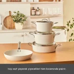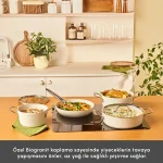 اگر سلامت و زیبایی در آشپزخانه برایتان مهم است ، سرویس قابلمه سنگی سفید Karaca Biogranit برای شما عالی است! به لطف روکش Biograni ، میتوانید غذاهای خود را با روغن کمتری بپزید و یک