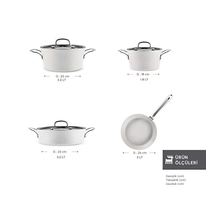 نام محصول : Karaca Biogranit White Stone 7 Parça Tencere Seti