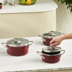 نام محصول : Karaca Erva Emaye 6 Parça Midi Tencere Seti Bordo