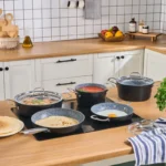 نام محصول : Karaca Biogranit Monet 8 Parça Tencere Seti Siyah