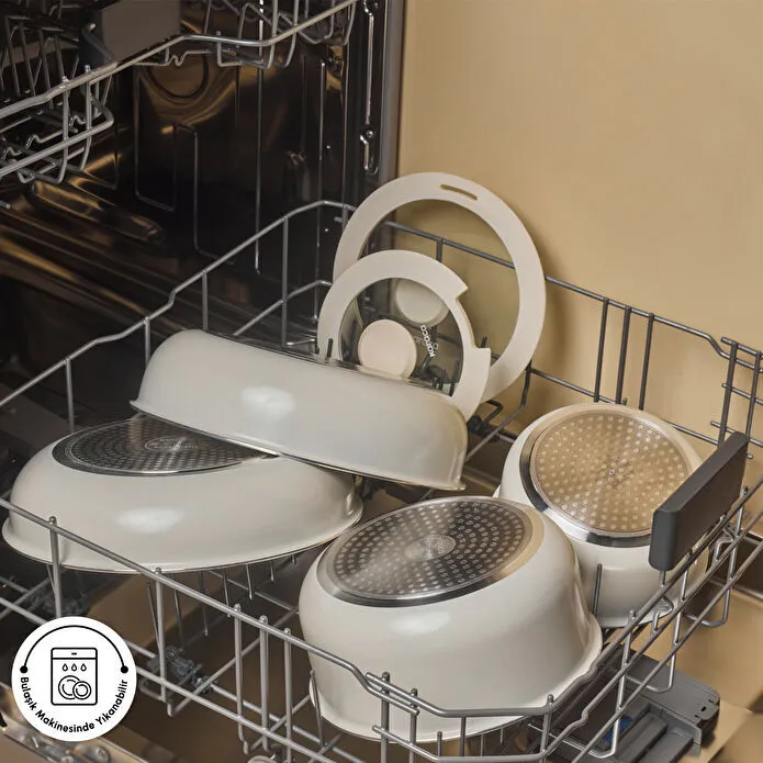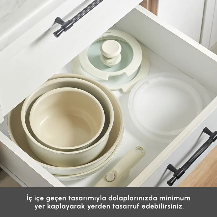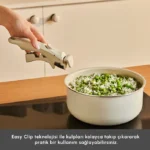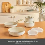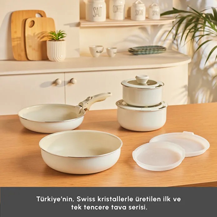 نام محصول : Karaca Swiss Crystal Almond Cream Easy Clip 9 Parça İndüksiyon Tabanlı Tencere Seti