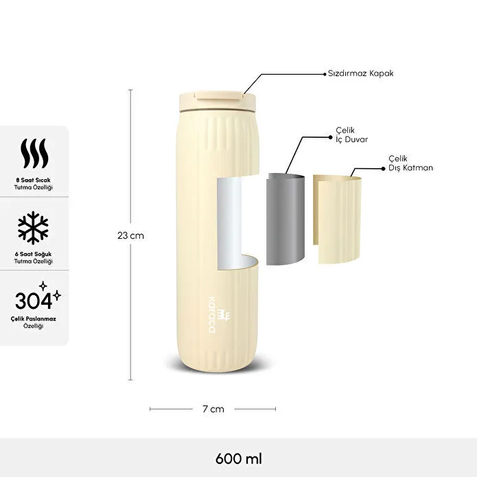 نام محصول : Karaca Rimo Sızdırmaz Çelik Termos 600 ml Krem