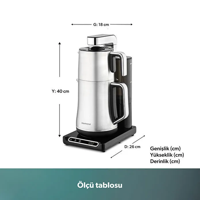نام محصول : Homend Teabot 1785H Konuşan Otomatik Çay Makinesi Krom
