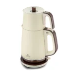 قوری استیل با ظرفیت ۱ لیتر قوری استیل دستگاه چای شما نشانگر سلامت و طعم چای است.ظرفیت ۱ لیتری این دستگاه تضمین میکند که میتوانید برای ۷ تا ۸ نفر چای دم کنید.مخزن آب ۱.۹ لیتری چایساز شما یک کتری نیز هست.به لطف درب مخصوص طراحی شده، میتوانید از آن فقط برای گرم کردن آب نیز استفاده کنید.صافی استیل: به لطف ساختار پهن خود که چای و گیاهان را فشرده نمیکند، آب را به تمام نقاط توزیع میکند و دمنوشی بسیار سالمتر و خوشمزهتر را فراهم میکند.منقار ویژه: به لطف ساختار ویژه منقار ضد آب و طراحی ارگونومیک، حتی یک قطره هم هدر نمیرود.گرمای ماندگار: وقتی آب به جوش میآید، سیستم گرم نگهداشتن فعال میشود. به این ترتیب، لذت چای شما برای مدت طولانیتری ادامه خواهد داشت.بدنه قابل چرخش ۳۶۰ درجه به لطف بدنه قابل چرخش ۳۶۰ درجه دستگاه چایساز، دیگر نیازی به چرخاندن دستگاه چایساز خود ندارید.