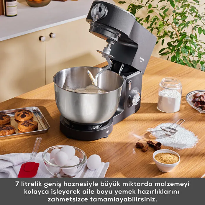 نام محصول : Karaca Multichef Ultra Kıyma Çekme/Sucuk-Sosis/İçli Köfte Aparatlı Hamur Yoğurma Makinesi Antrasit 2000W 7L